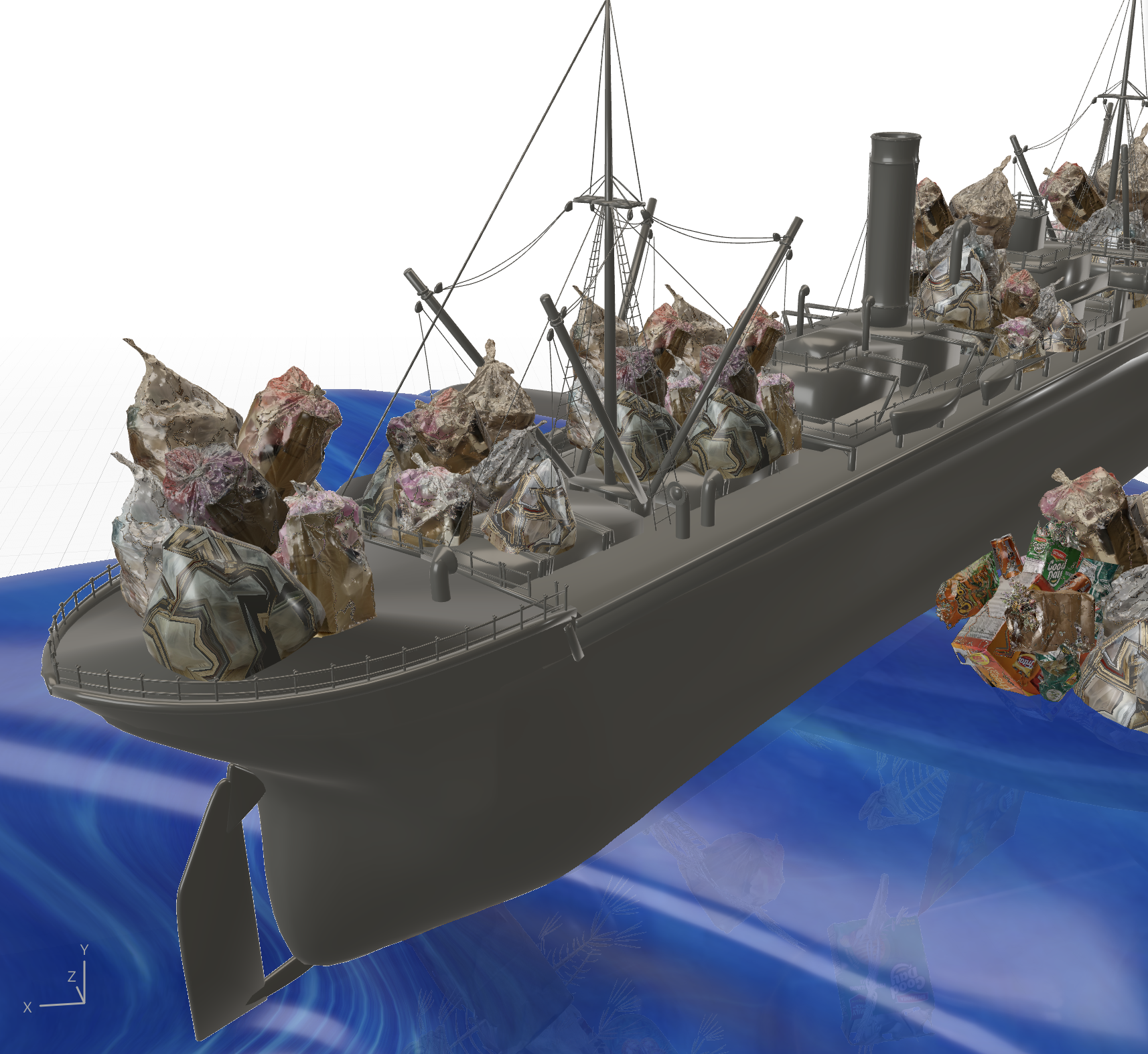 A dystopian take on the future of the ocean if we don’t change our lifestyle and take charge. As the garbage disappers when tapped, dead fish bones replace them until the user stands in the middle of an ocean full of floating carcass.